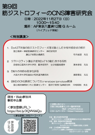 2022年11月27日(日)、第9回筋ジストロフィーのCNS障害研究会開催